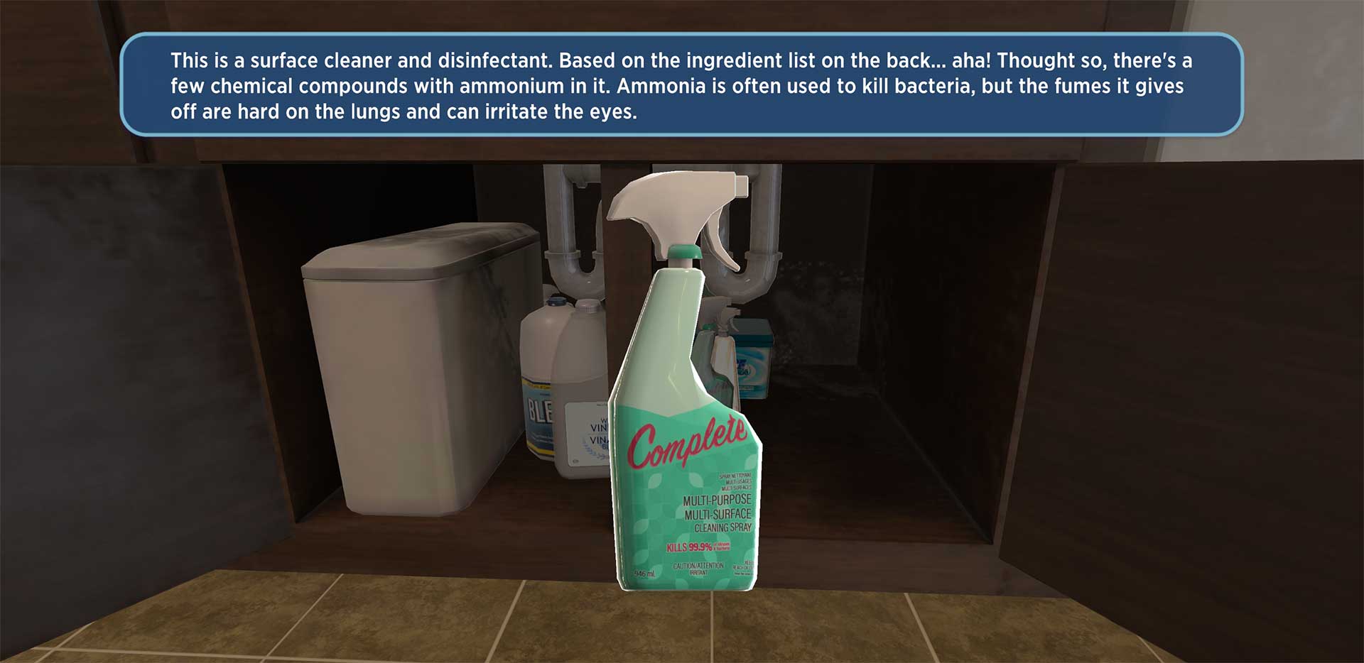 Designed for ages 12 and up, this app turns real-life learning into a playful digital task list. As users clean up a messy kitchen, loading dishes, organizing under the sink, storing food, and more, they receive important chemical safety tips through voiceover guidance and story-based interaction.